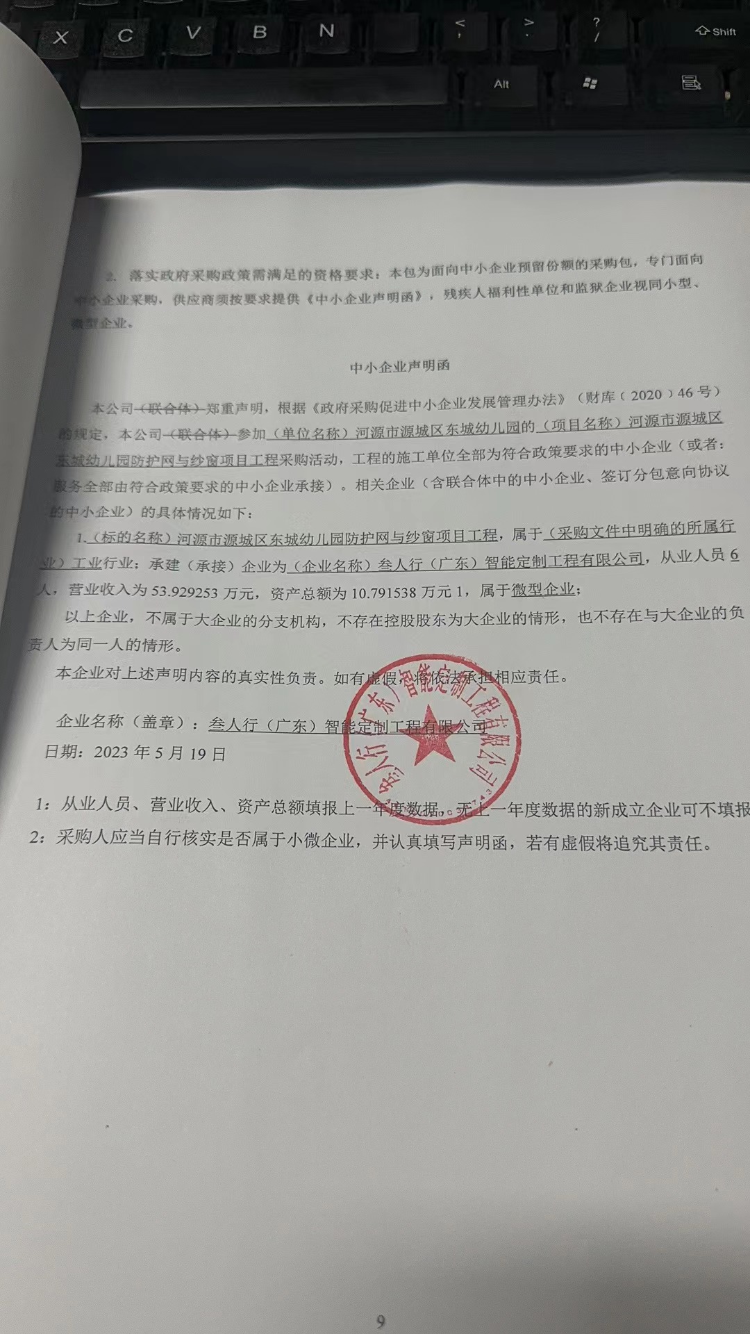 项目名称:河源市源城区东城幼儿园防护网与纱窗项目工程 工程范围:按谈判文件规定要求 工程要求:按谈判文件要求完成相关工作 合同履行期限:合同签订后90日历天内完工。 |