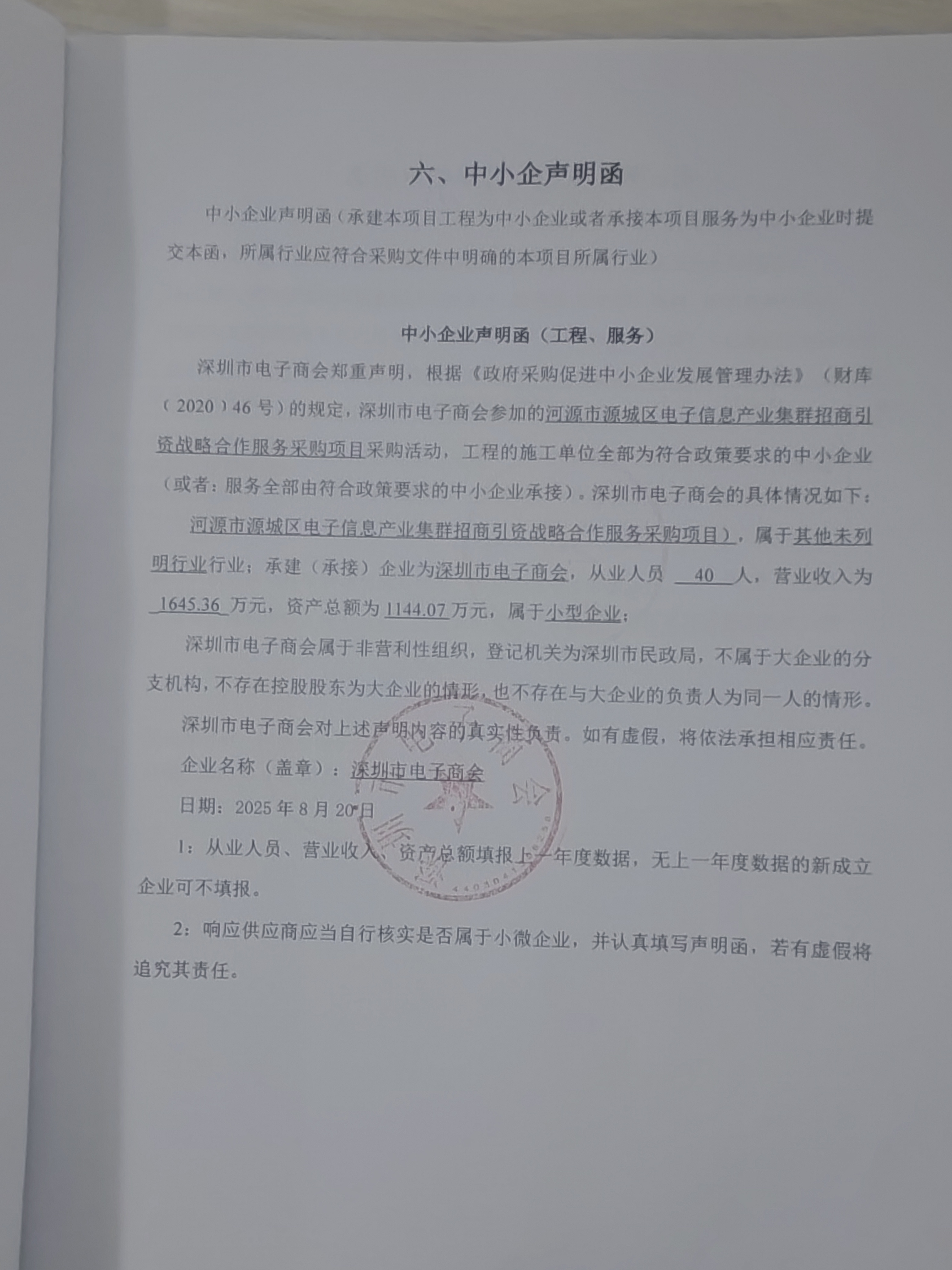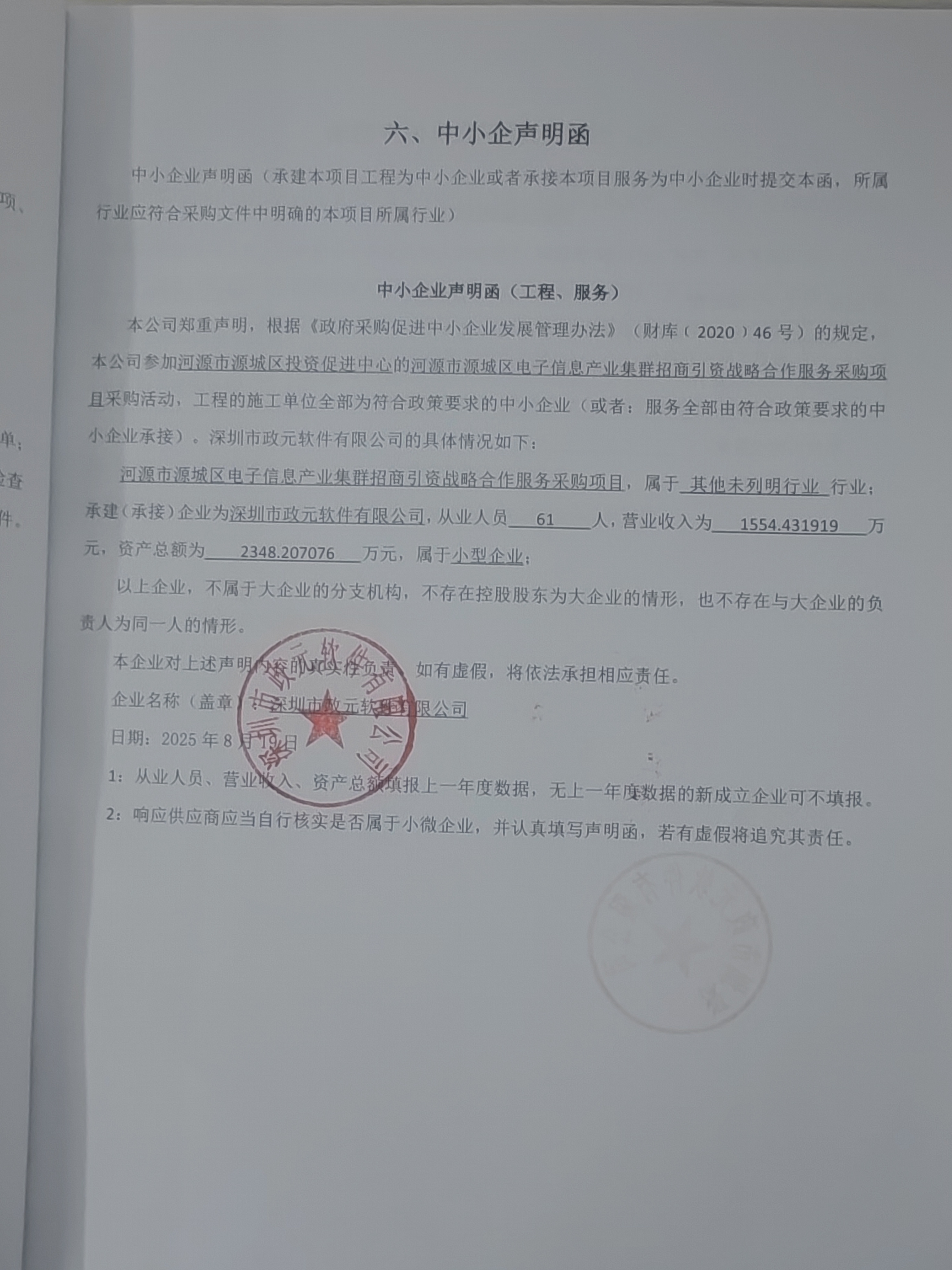 二、项目名称:河源市源城区电子信息产业集群招商引资战略合作服务采购项目