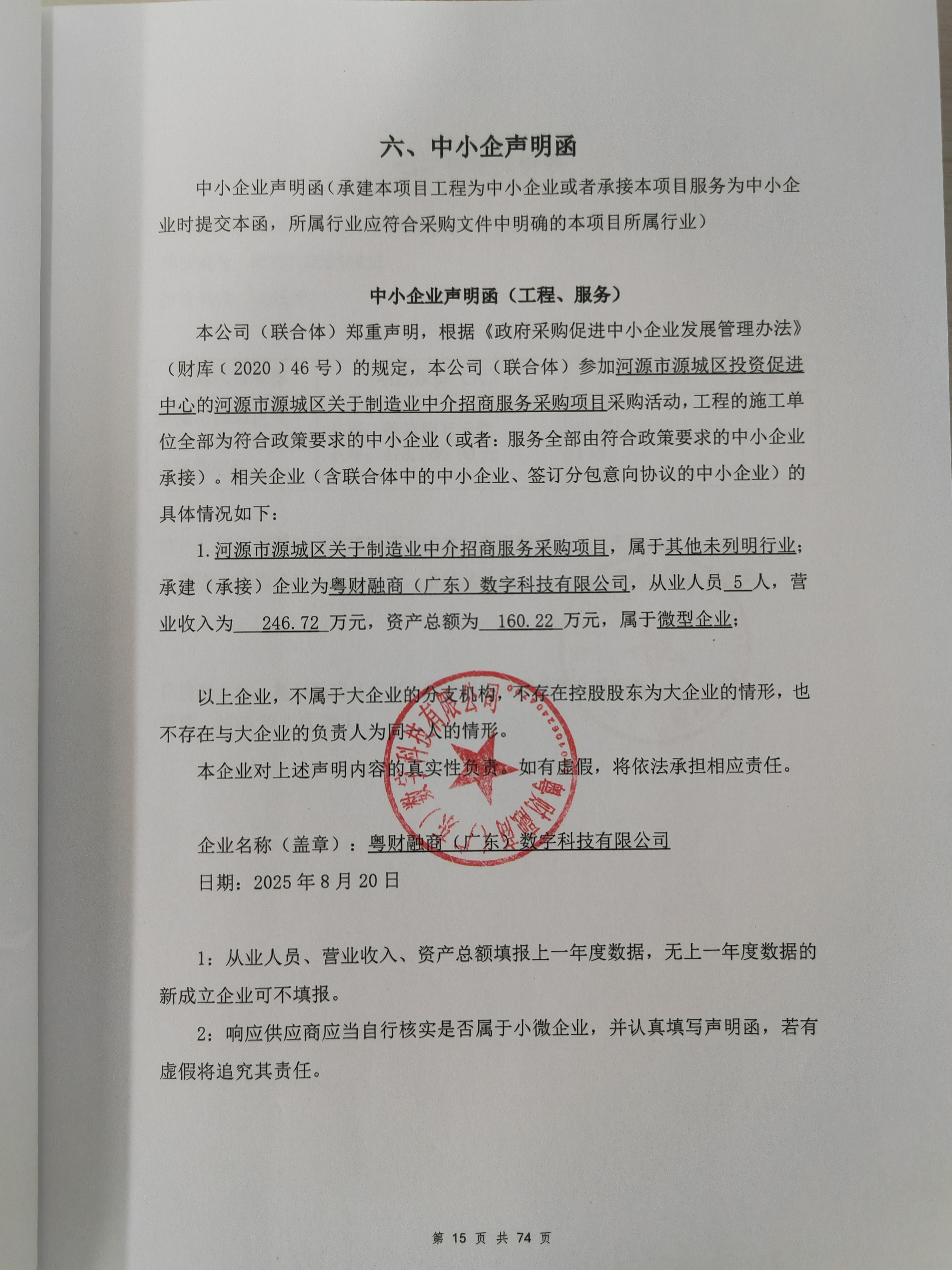 二、项目名称:河源市源城区关于制造业中介招商服务采购项目